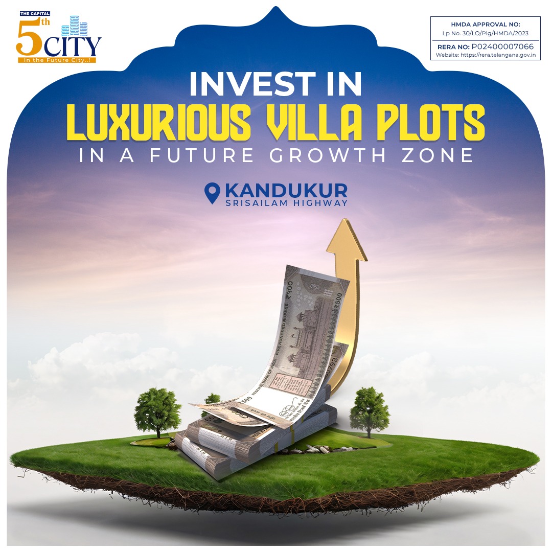 A stunning entrance gate and a 70-ft access road welcome you into this premium venture. The Capital 5th City is an HMDA and RERA-approved villa plot project spread across 32.6 acres of scenic landscape. It offers 403 clear-title plots starting from 150 sq. yards. The vaasthu-compliant layout ensures comfort and harmony, while modern infrastructure and amenities support a secure lifestyle. An exclusive clubhouse set amidst lush greenery offers the perfect space for leisure, relaxation, and community living.